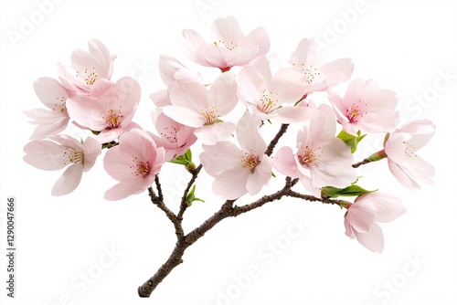 © nuiiko, Fototapeta premium Cherry blossoms spring concept. Delicate cherry blossoms in soft pink hues on a slender branch against a white background.