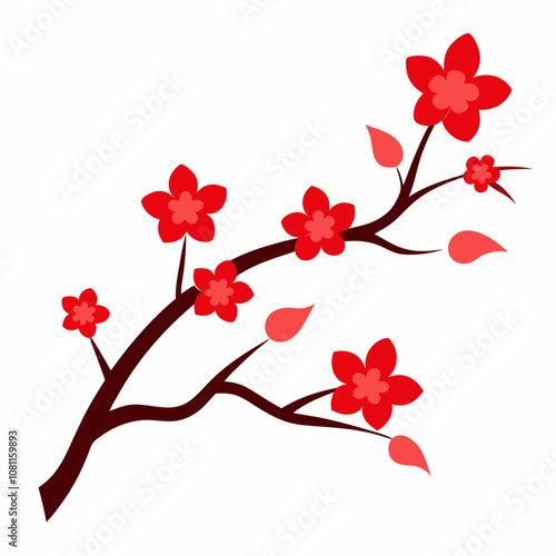 © Chayon Sarker, Naklejka premium cherry blossoms vector illustration on white background