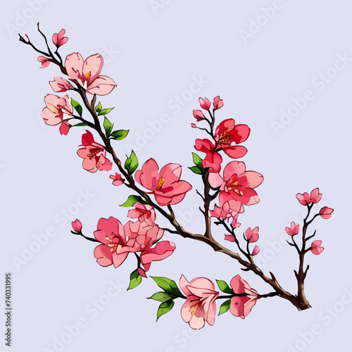 Naklejka premium Cherry blossoms vector watercolor Cherry blossoms branch vector