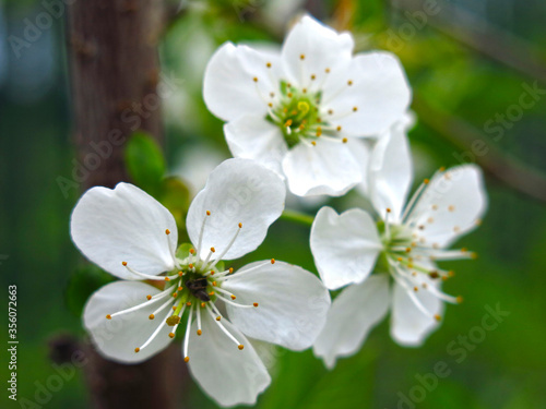 © Lumatis, Obraz premium cherry blossoms white flowers in the spring in the garden