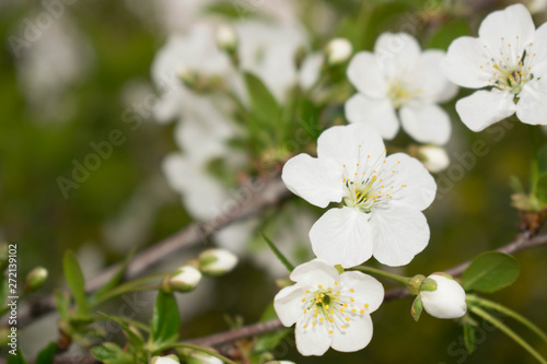 © Вера Третьякова, Fototapeta premium cherry flower white large flowering spring tree sakura for design background