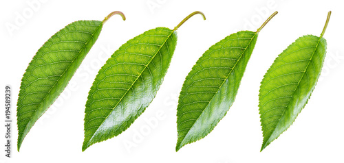 Fototapeta premium Cherry leaves isolated. Leaf on white background. With clipping path. Collection.