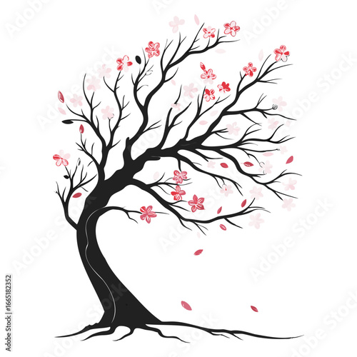 © MdEmajuddin, Fototapeta premium Cherry Tree and Sakura Blossom Vector Design