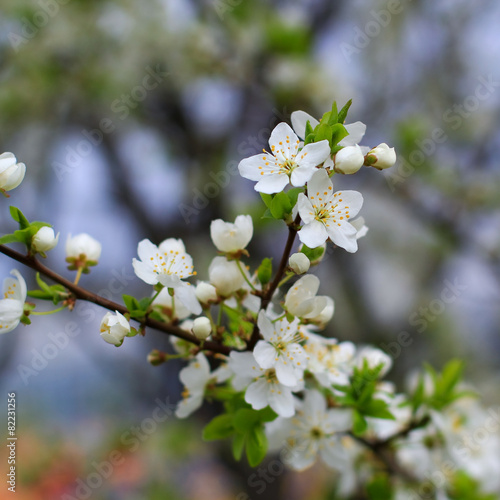 Obraz premium cherry tree blooming white flowers