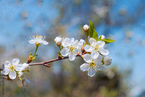 © Anatoliy, Fototapeta premium Cherry tree blossom spring background of blooming flowers beautiful nature with blossoming tree spring flowers.