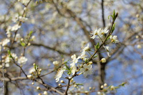 © zoomingfoto1712, Obraz premium cherry tree branch with blooming flowers close-up. spring in the fruit garden
