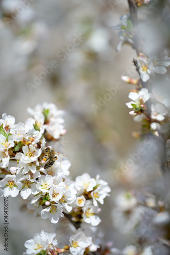 © lelechka, Fototapeta premium Cherry tree bush blooming with white flowers