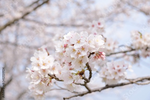 © yamanami, Obraz premium Cherry tree in bloom in spring