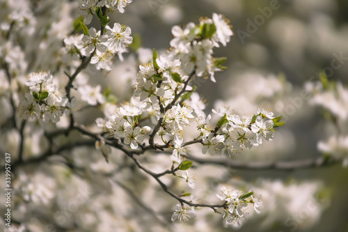 Fototapeta premium Cherry tree in blossom, spring outdoor background