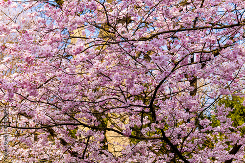 Fototapeta premium Cherry Tree In Spring. Sakura Flowers Background