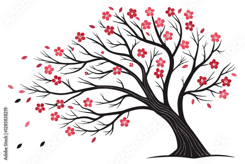 © tanvir, Fototapeta premium Cherry tree silhouette vector illustration