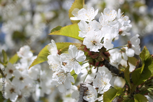 © sunnychicka, Obraz premium cherry tree spring panorama blossoms sky pink