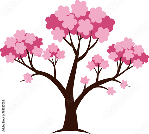 © 沈 建亨, Fototapeta premium Cherry tree with pink flowers isolated on white background. Vector illustration.