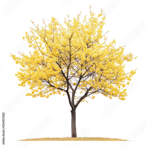 © Mohshena, Fototapeta premium Cherry trees (sakura) light yellow blossoming on transparent background