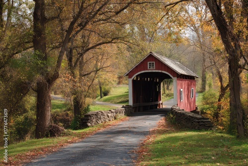 © Vlad, Fototapeta premium Chester County Pa. Historic Sheeder-Hall Covered Bridge in American Countryside