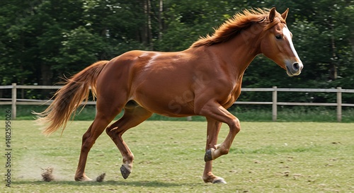 © Joseph, Fototapeta premium Chestnut Horse Galloping, Summer Pasture Freedom