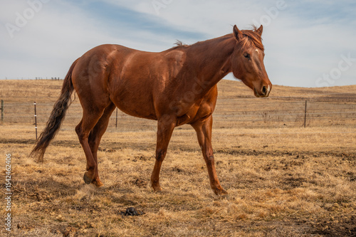 Fototapeta premium Chestnut Horse in Dry Pasture