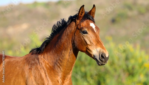 © Menawi, Fototapeta premium Chestnut Horse Portrait, Outdoor Pasture