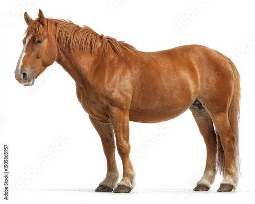 © GraphicVisuals, Fototapeta premium Chestnut horse standing against a white background.
