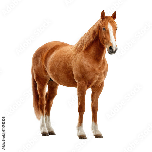 © PNG STORE, Obraz premium Chestnut horse standing in a studio setting isolated on transparent background