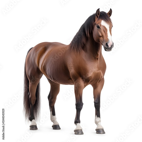 © Kopi_std, Fototapeta premium Chestnut horse studio portrait, white background, equine photography, animal print
