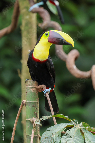 Obraz premium Chestnut Mandibled Toucan perched on a tree in Costa Rica