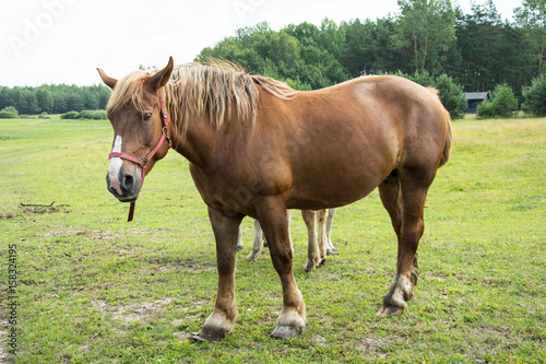 © dorotaemiliac, Obraz premium Chestnut mare walking on a meadow
