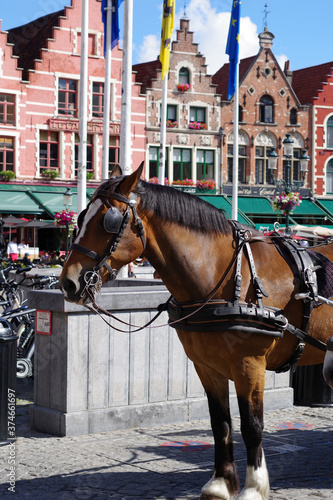 Fototapeta premium Cheval bai attelé