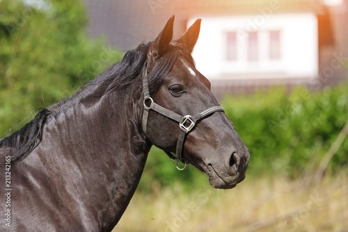 Fototapeta premium cheval noir croisement Alençon et pur sang arabe