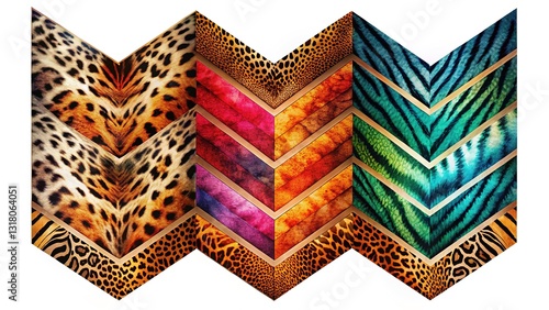 Fototapeta premium Chevron brick pattern, animal print, double-exposed art.
