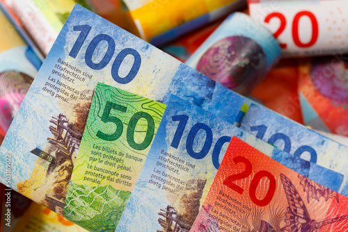 Obraz premium CHF banknotes, financial background, Swiss franc