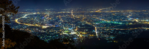 Fototapeta premium Chiang Mai city cityscape aerial view skyline during night with illuminated light, panorama.