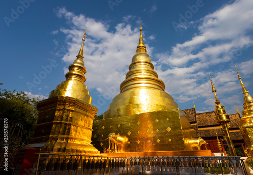 © ADSKrongsawat, Naklejka premium CHIANGMAI, THAILAND - FEBRUARY 17, 2019 : Pagoda in Wat Phra Singh in Chiangmai, Thailand. Wat Phra Singh is the famous Buddhist temple in downtown of Chiangmai