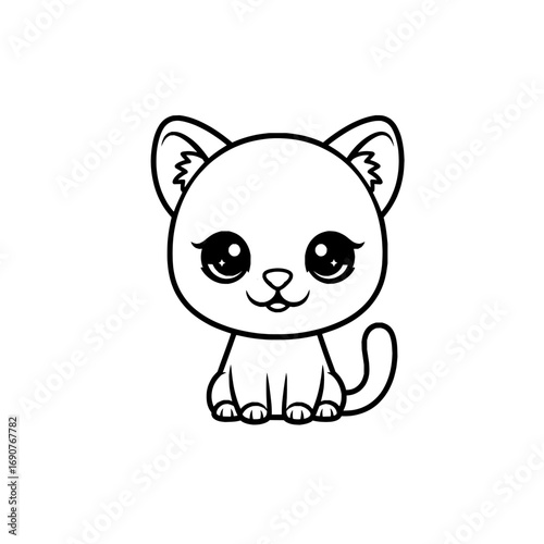 © Shanda, Fototapeta premium Chibi cougar, black and white vector, bold clean shape, isolated.