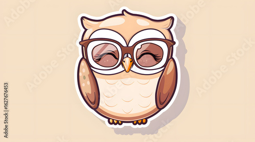 © Ky, Obraz premium chibi small European Owl glasses sleepy look