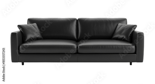 © Hyejin Kang, Fototapeta premium Chic black leather sofa on transparent background.