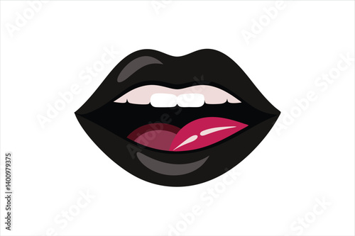 Obraz premium Chic Black Lips PNG with Playful Tongue Pose on White Background Alternative