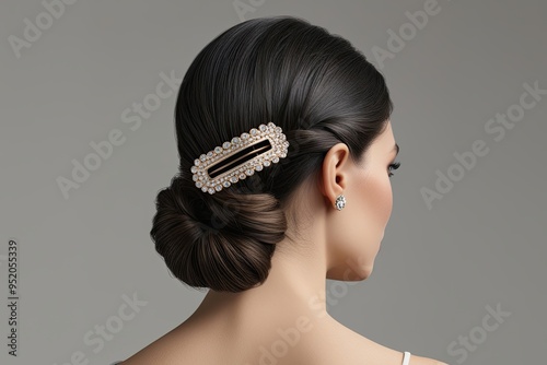 © Michael, Naklejka premium Chic Hairpin Mockup Showcased in Elegant Woman's Hairstyle Closeup