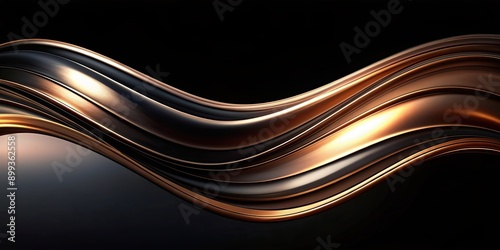 Obraz premium Chic metallic bronze and stark black abstract dot wave, contemporary style,...