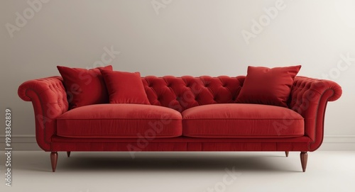 Fototapeta premium Chic scarlet lounge sofa displayed with a clean neutral background
