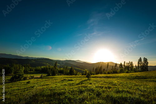 © YouraPechkin, Obraz premium Chic view from hilltop onto a spruce forest