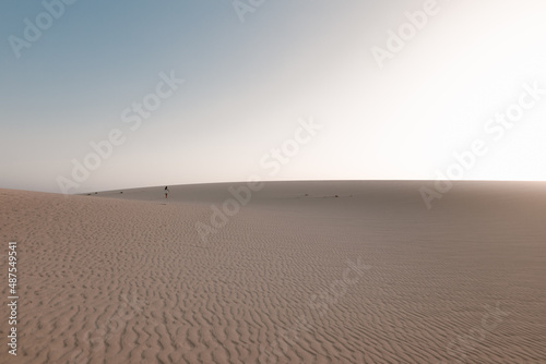 © Jairo Díaz, Naklejka premium Chica caminando por la arena de las dunas en Fuerteventura durante el atardecer