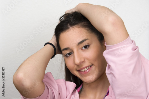 © bsanchez, Naklejka premium chica con el pelo recogido con las manos