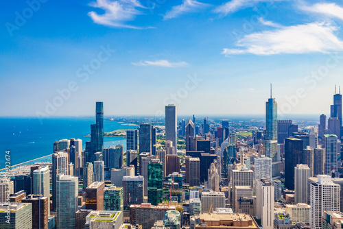 © Paulo Nabas, Fototapeta premium Chicago aerial photography view of buildings in a sunny day. Architectural view of the city, urban scene.
