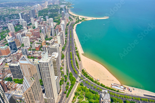 © haveseen, Naklejka premium Chicago city aerial view, Illinois, USA