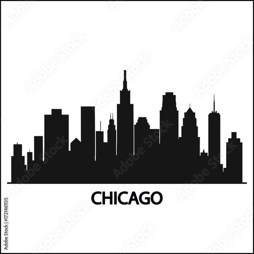 Fototapeta premium Chicago City Skyline Silhouette with Iconic Skyscrapers