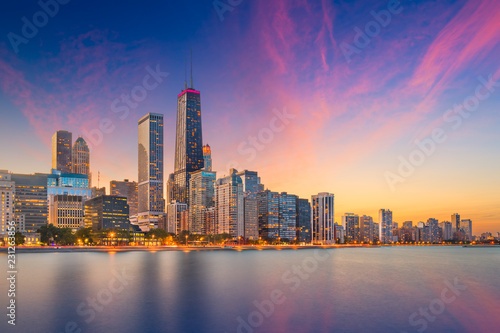 © SeanPavonePhoto, Obraz premium Chicago, Illinois, USA Lake Skyline