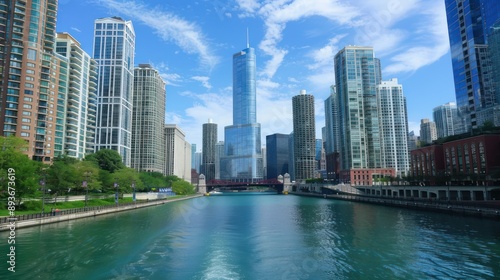 © Chandara, Fototapeta premium Chicago River and Cityscape