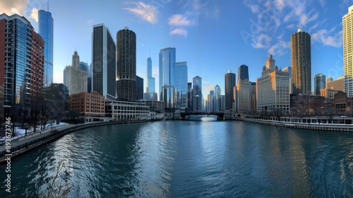 © Chandara, Fototapeta premium Chicago River and Cityscape