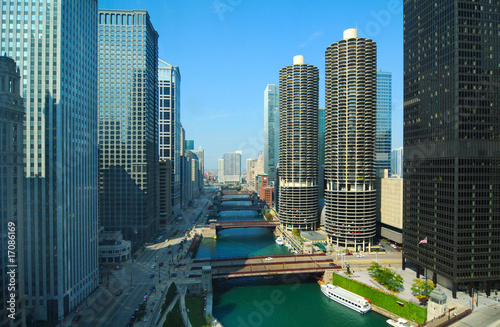 © Kenneth Sponsler, Fototapeta premium Chicago River seen from a high vantage